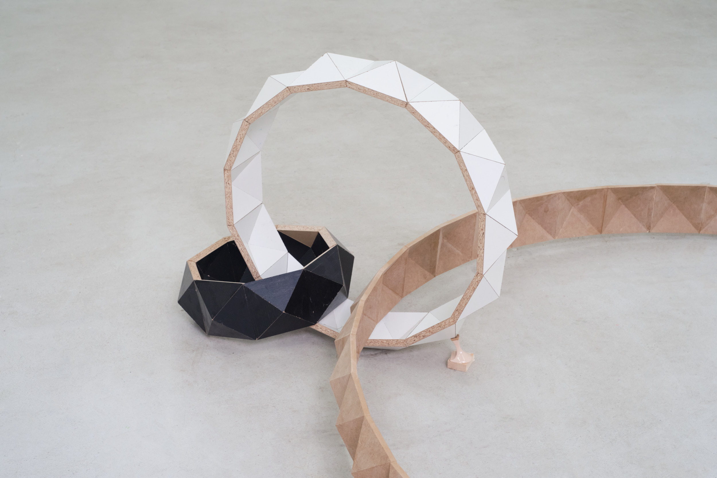 Große Ringe (2025), MDF, Pressspan, 180 x 50 x 40 cm.